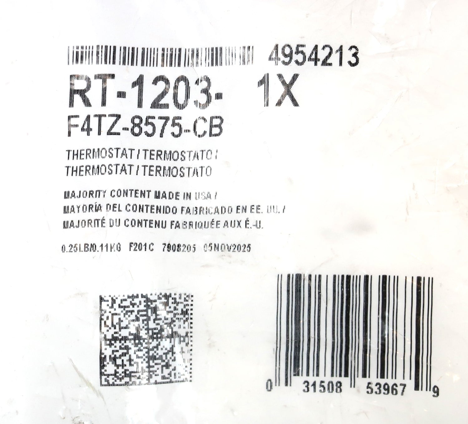 Maintain proper engine operating temperature with this Genuine Motorcraft Thermostat, part number RT-1203 / F4TZ-8575-CB, designed for 1994–1995 Ford 7.3L Powerstroke diesel engines.