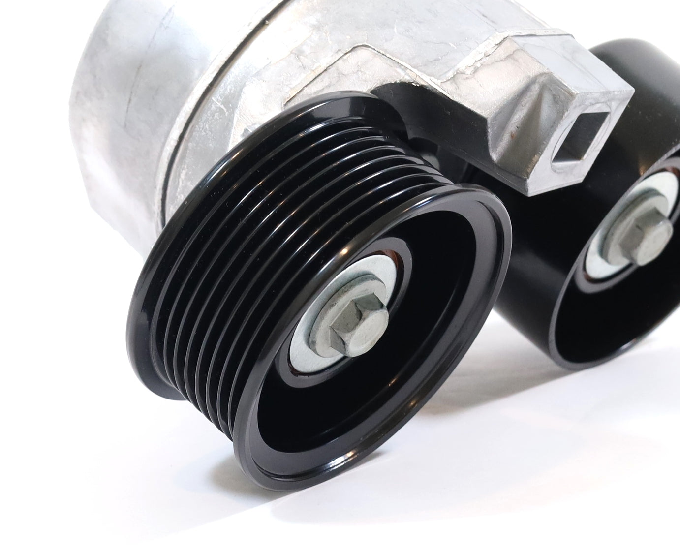 - Maintains proper belt tension to prevent slippage and squeal