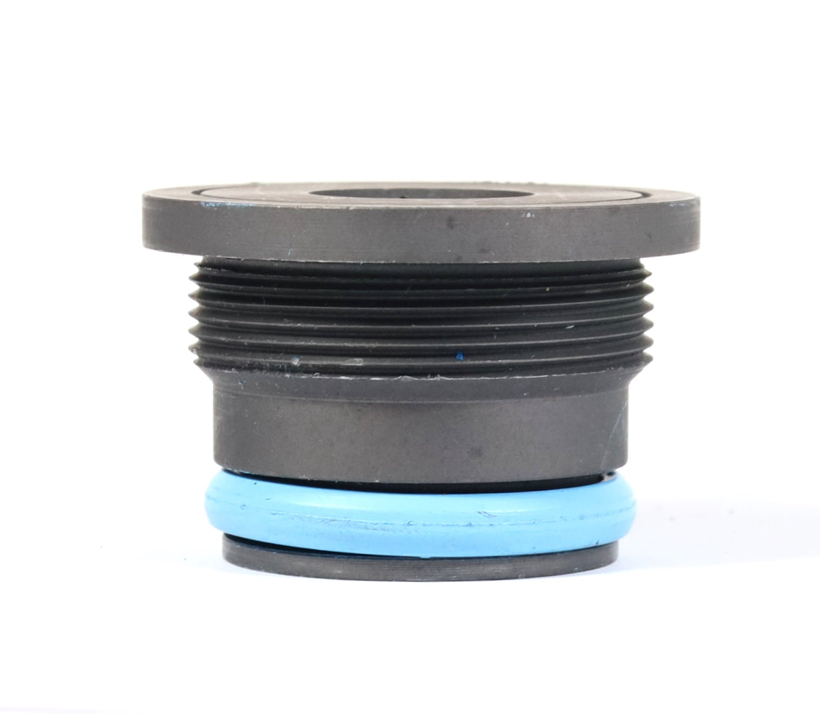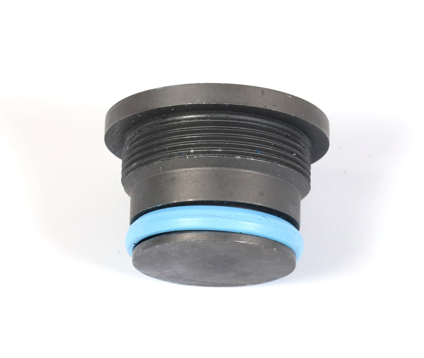 Oil rail plugs located on either end of the cylinder head require a specialty o-ring if they begin to leak. This is the large round 1 3/4" plug with the 1/2" drive socket hole. During engine rebuild it is good practice to replace these plugs and gaskets since they are almost impossible to reach once the engine is installed in the bay.