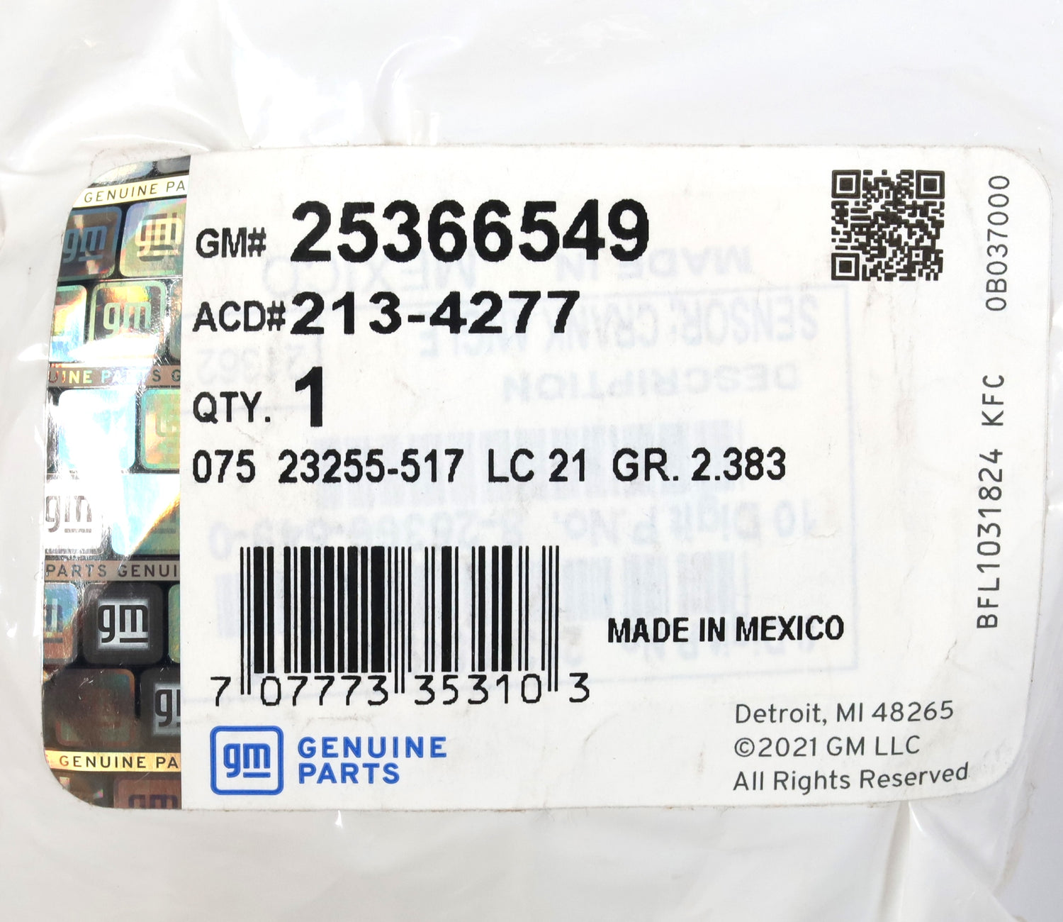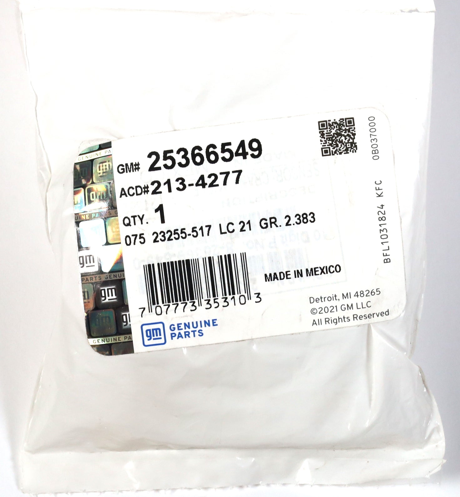 ACDelco Part Number: 213-4277 | GM Part Number: 25366549