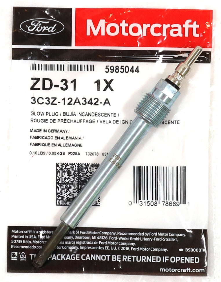 These are authentic Motorcraft ZD-31 glow plugs — the only plugs approved by Ford for early 6.0L Powerstroke engines. Do not risk engine damage with cheap aftermarket substitutes that can swell, break off, or create piston clearance issues.