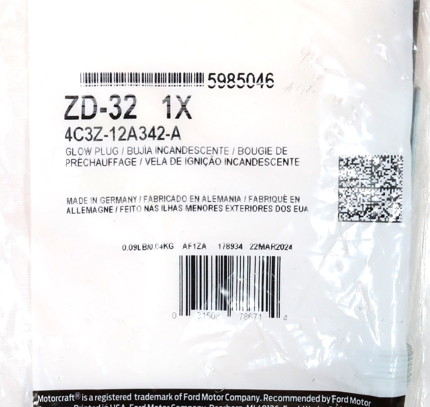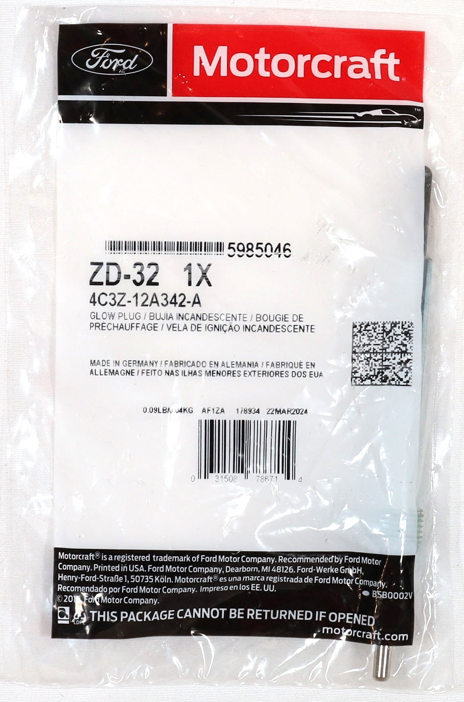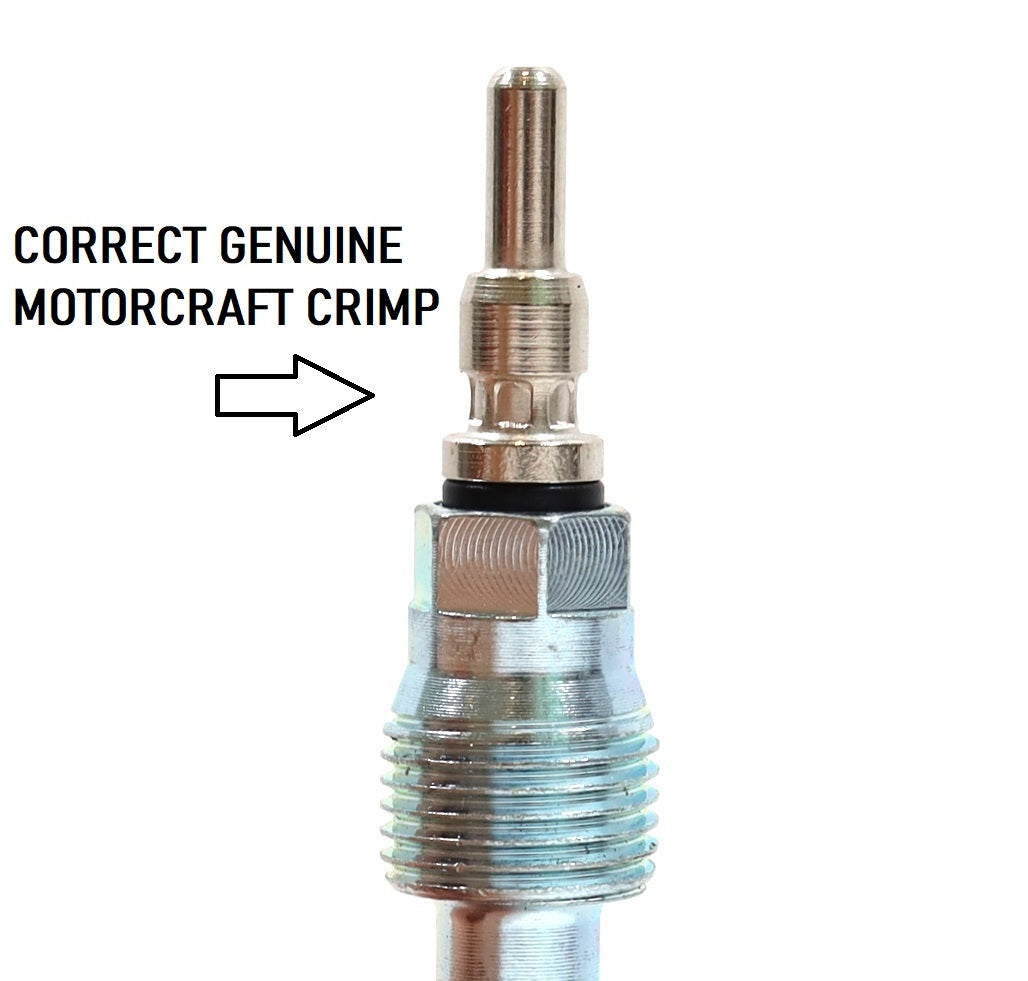 Motorcraft ZD-32 glow plugs are 1.2mm shorter than earlier versions, and easily identified by the correct factory crimp design (see image example). Trust the same OEM parts Ford installs from the factory.
