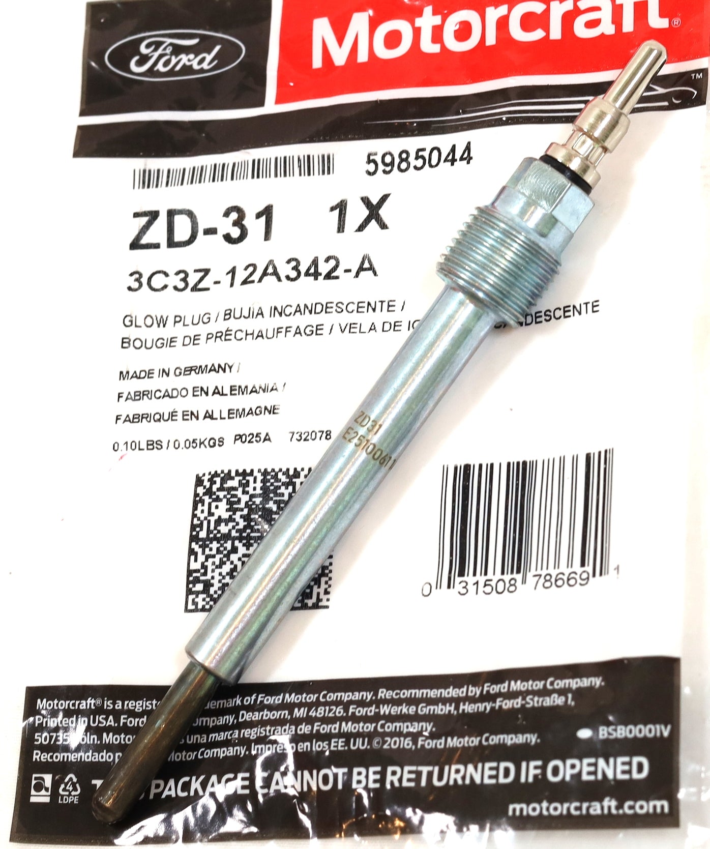 These are authentic Motorcraft ZD-31 glow plugs — the only plugs approved by Ford for early 6.0L Powerstroke engines. Do not risk engine damage with cheap aftermarket substitutes that can swell, break off, or create piston clearance issues.