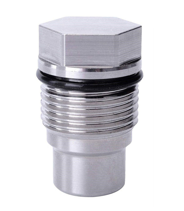 This race fuel rail plug replaces the pressure relief valve which tends to leak fuel rail pressure under wide open throttle conditions, machined from Stainless Steel for superior durability!