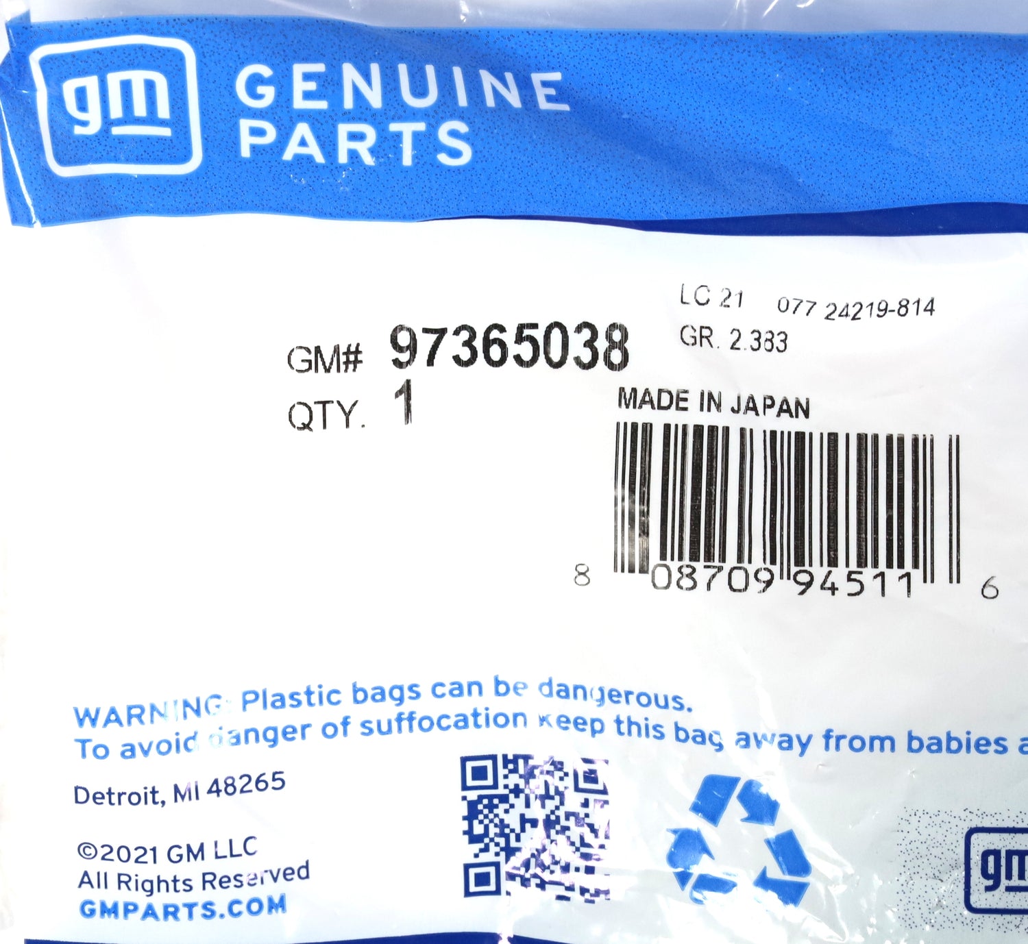 GM Part Number: 97365038