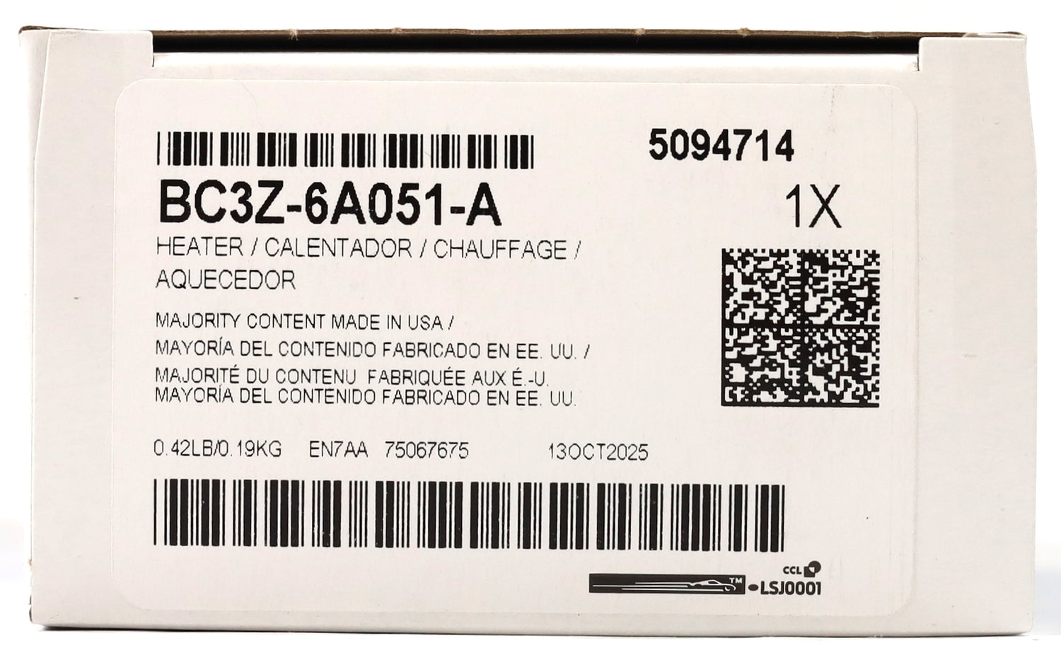 This OEM heater installs directly into the block’s factory port and provides consistent pre-heating in freezing temperatures. Warming the engine reduces cold-start wear, improves lubrication, speeds cranking, and helps stabilize idle. This is the exact Ford replacement, offering proper fitment and long-term durability—not an aftermarket substitute.