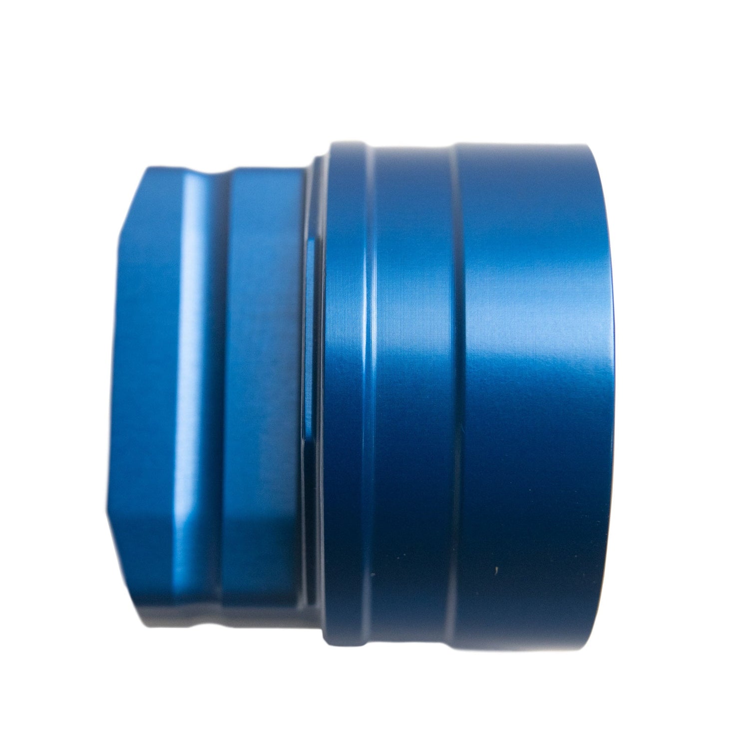 Both caps are precision-machined from 6061-T6 billet aluminum for superior durability and corrosion resistance. The fuel cap is anodized green and the DEF cap anodized blue, providing a clean appearance and a clear reminder of fluid location.