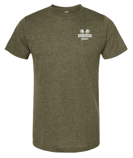 BackWoods Diesel Heather Military Green T-Shirt – American Flag Edition