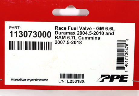 PPE 113073000 Race Fuel Rail Plug 04.5-10 LLY LBZ LMM Duramax & 07.5-18 6.7L Cummins